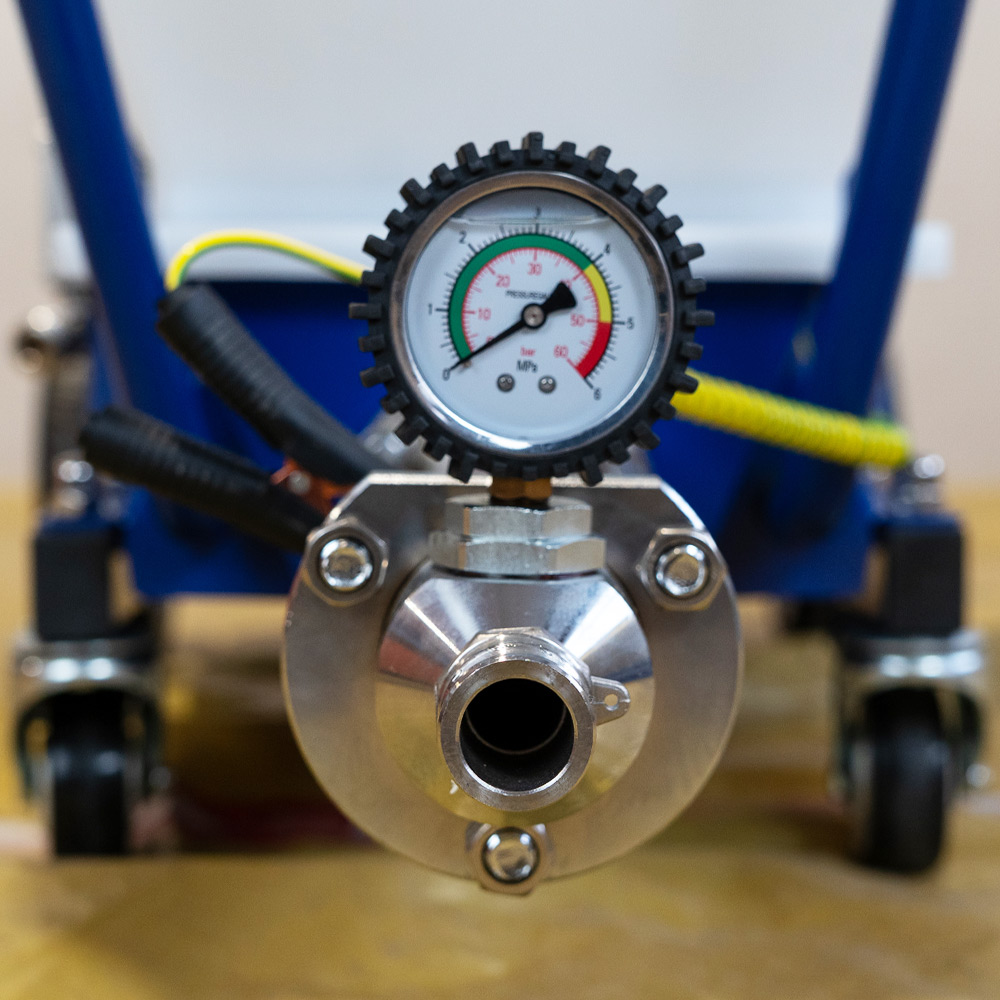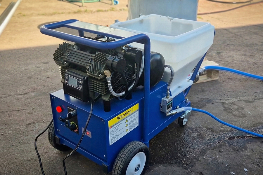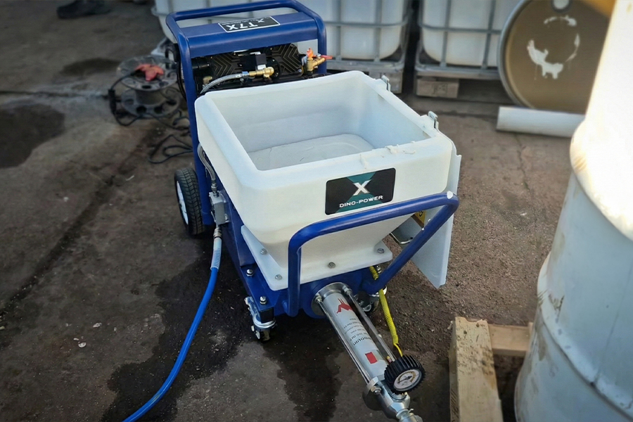 Przy cienkowarstwowych tynkach wewnętrznych (np. gładzie i masy wykończeniowe) kluczowe są równe podanie materiału i tempo pracy, szczególnie w pomieszczeniach z dużą liczbą ścian i sufitów. Agregat DP-T7X umożliwia szybkie i powtarzalne nanoszenie materiału,