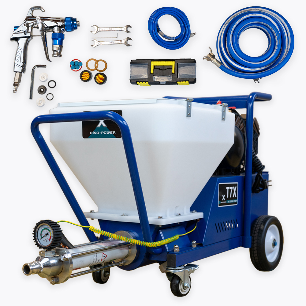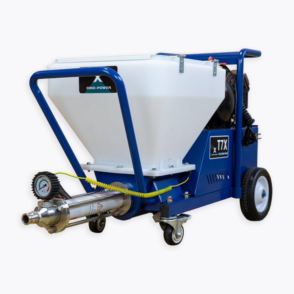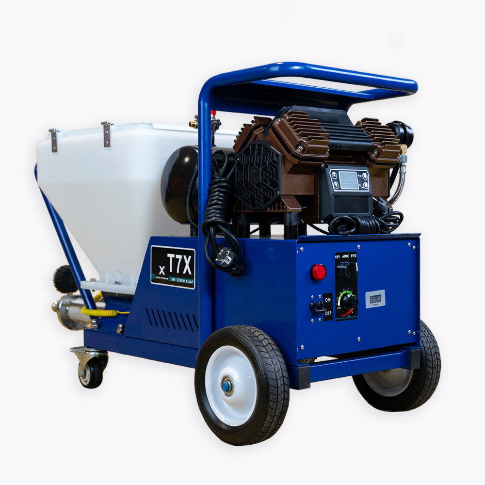 DP-T7X to profesjonalny agregat tynkarski z pompą śrubową (ślimakiem), zaprojektowany do szybkiej i powtarzalnej aplikacji tynków, gładzi oraz zapraw wykorzystywanych przy termomodernizacji i pracach elewacyjnych. Urządzenie pozwala znacząco skrócić najbardziej czasochłonne etapy robót, zwiększyć tempo pracy i utrzymać stałą jakość natrysku na dużych powierzchniach.