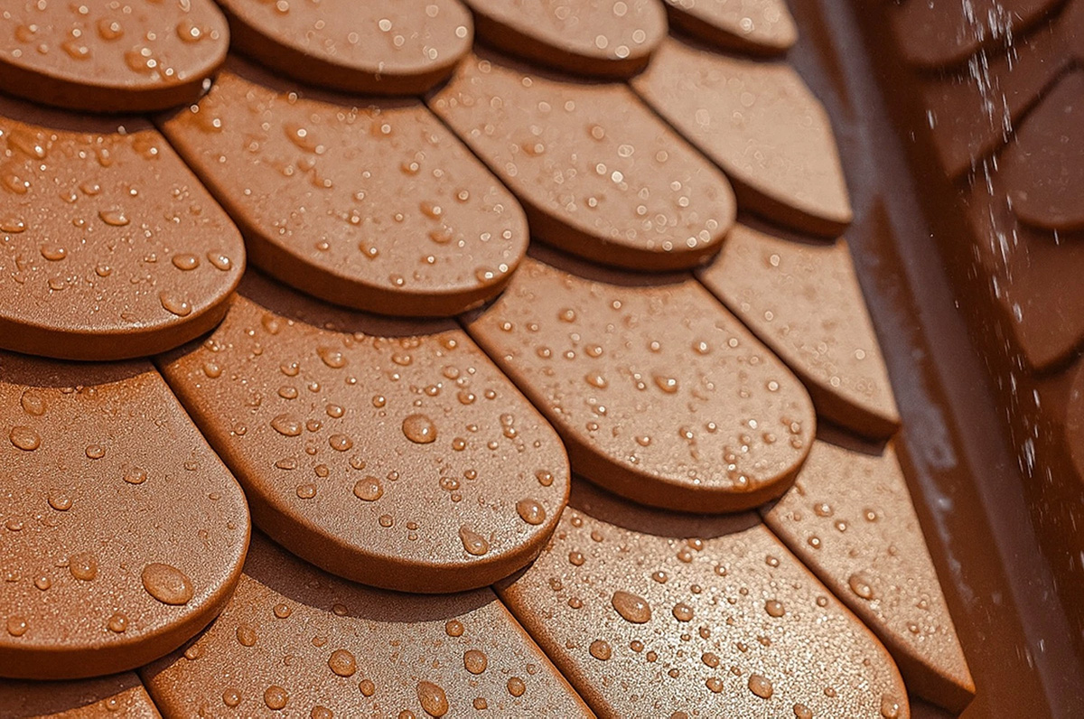 ✔️ Nasycenie naturalnej barwy – impregnat jest bezbarwny, jednak jego obecność w mikroporach delikatnie pogłębia kolor dachówki, nadając jej odświeżony wygląd.