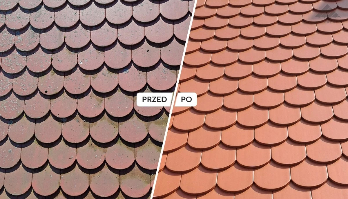 Impregnacja Dach-Ker-Flegen trwale zamyka mikropory, budując hydrofobową barierę, która odpycha wodę i brud. Dzięki temu dach zachowuje swoje właściwości techniczne, a barwa dachówki staje się wyraźnie nasycona, co znacząco poprawia ogólną estetykę budynku bez zmiany struktury poszycia.